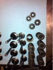 | Starting to lay out all my parts: here are valve spring retainers, springs, and valves |